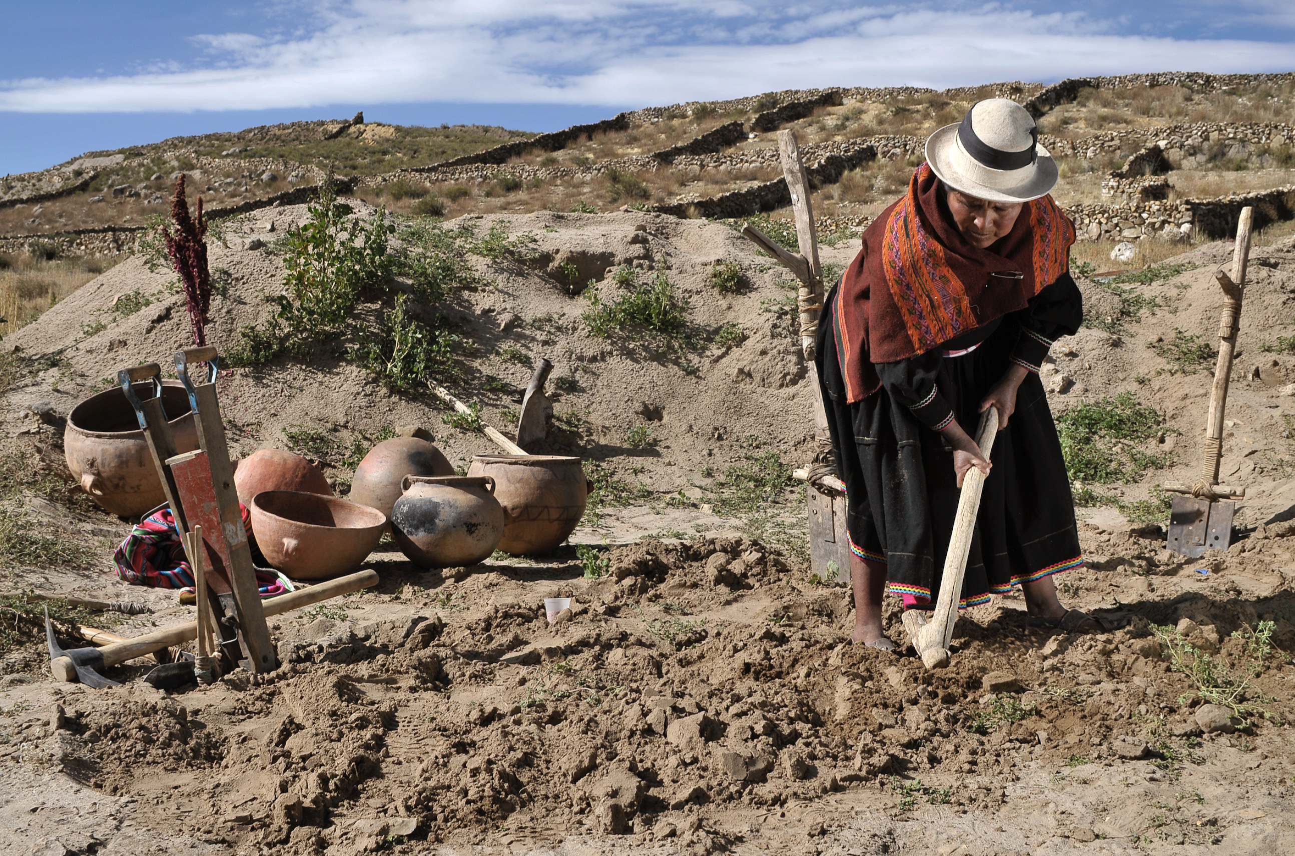 Se empleaban métodos de agricultura orgánica, sin utilizar insumos sintéticos, y las parcelas de tierra estaban protegidas con cercas de piedra. Sin embargo, después de 2004, el calentamiento global creó condiciones favorables para que la quinua creciera en las tierras planas, lo que provocó un cambio